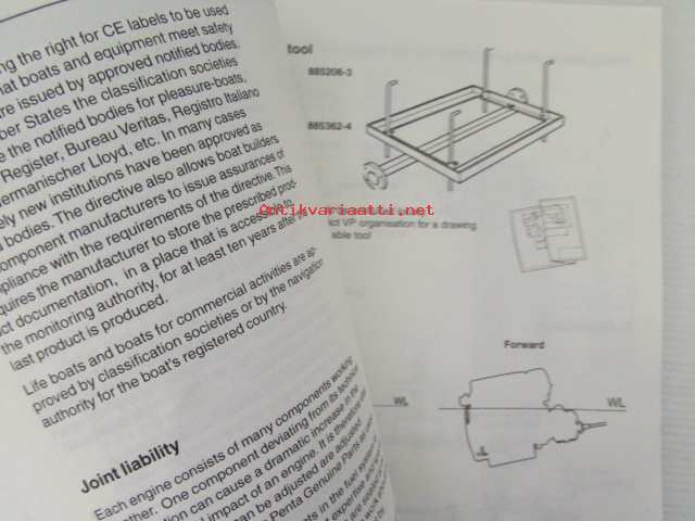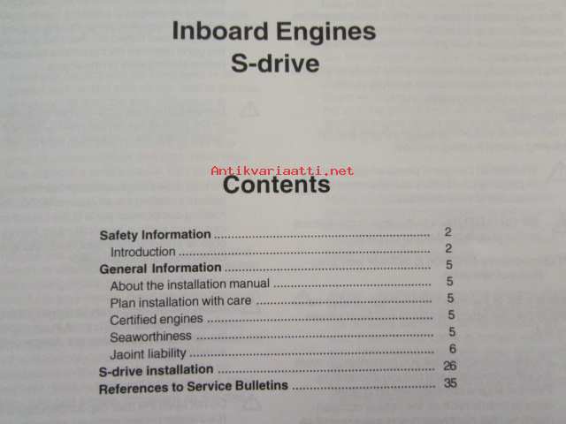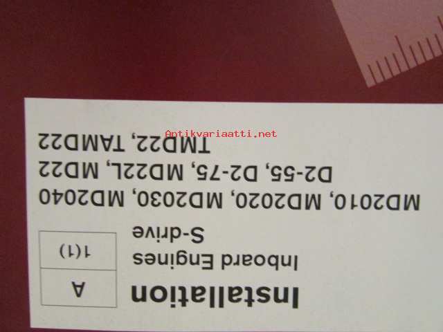 Volvo Penta, 2003Volvo Penta Installation Inboard Engines S-drive - MD2010, MD2020, MD2030, MD2040, D2-55, D2-75, MD22L, MD22, TMD22, TAMD22 -sisäperämoottorin asennus, katso tarkemmat mallien merkinnät kuvasta.