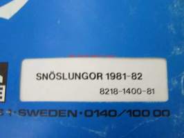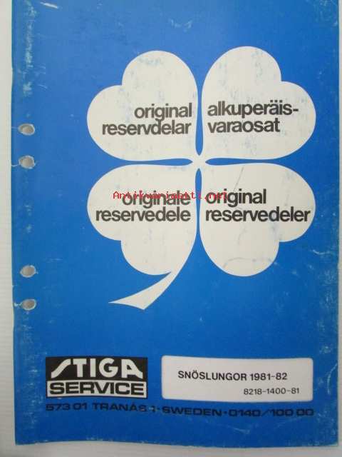 Stiga, 1983Stiga Service Alkuperäiset varaosat / Original reservdelar / Originale reservedele / Original reservedeler Snöslungor - Lumilingot 1981-82 8218-1400-81 -varaosaluettelo, katso tarkemmat mallit kuvista