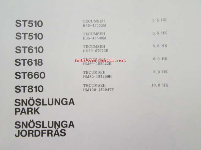 Stiga Service Alkuperäiset varaosat / Original reservdelar / Originale reservedele / Original reservedeler Snöslungor - Lumilingot 1981-82 8218-1400-81