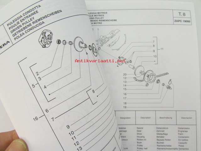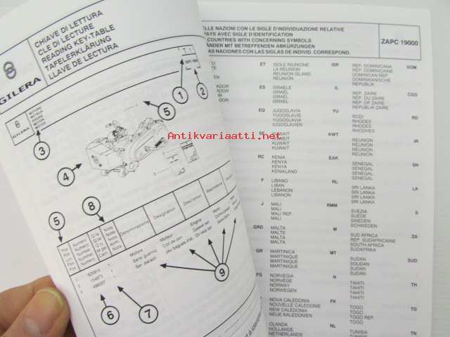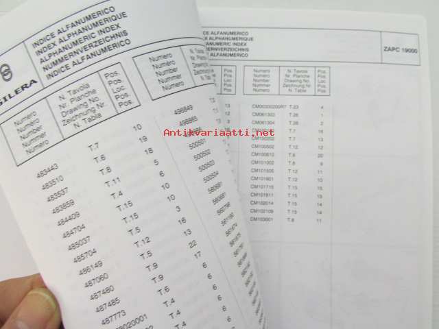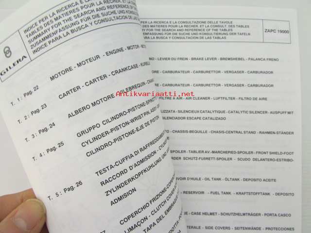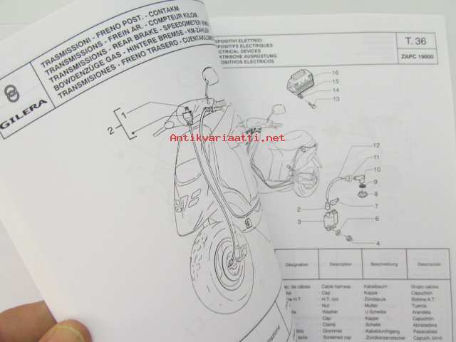 Gilera Typhoon XR50KAT Catalogue of Spare Parts 594223 -varaosaluettelo, katso kuvista mallimerkintä tarkemmin