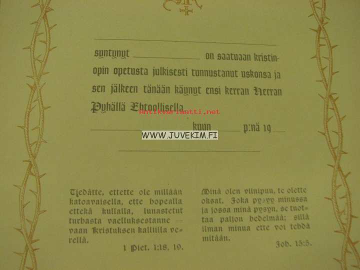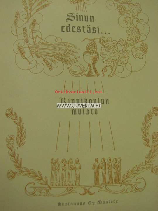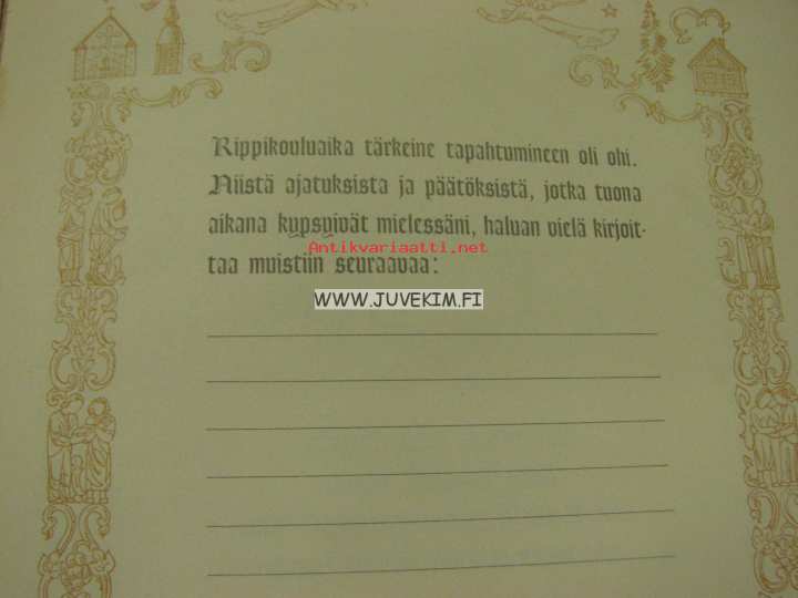 Kustannus Oy Mantere, 194821 x 30 cm kirja. Rippikoululaisen ja rippikouluajan arvokas muistokirja, täyttämätön.