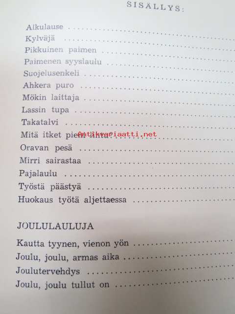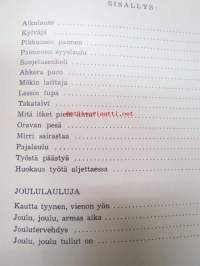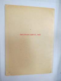 | Saatavilla | 1 kpl | | Julkaisuvuosi | 1954 | | Sivuja | 30 | | Painos | 1. | | Kunto | K2 | | Sidonta/painoasu | Nidottu (pehmeäk.) | | Kielet | Suomi |