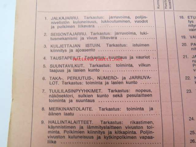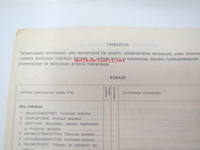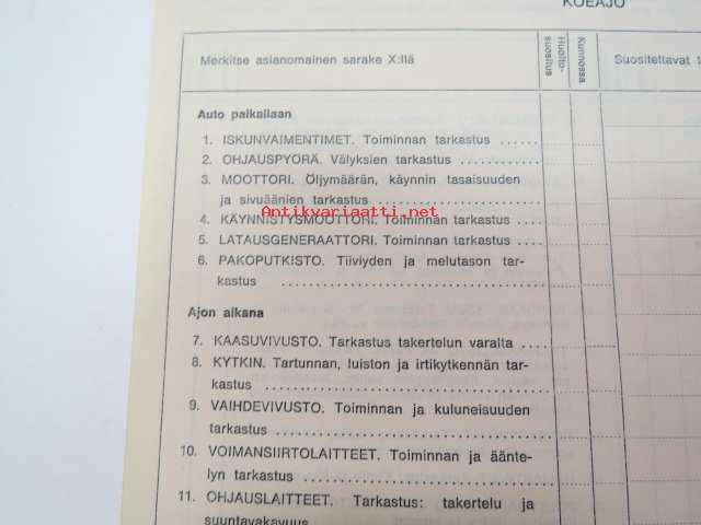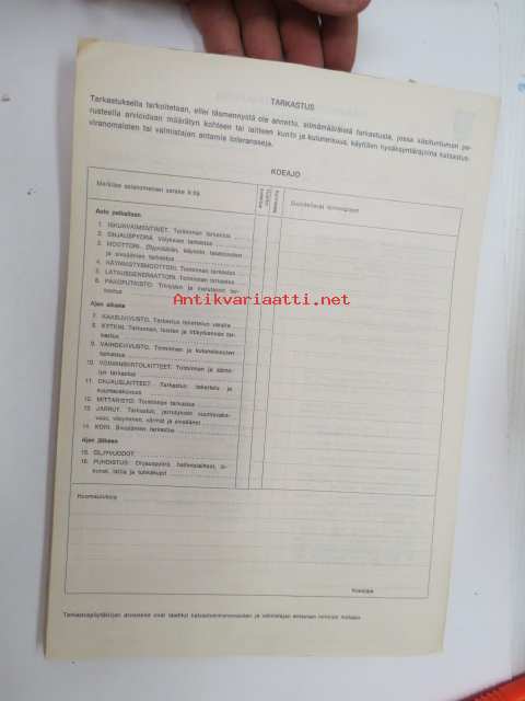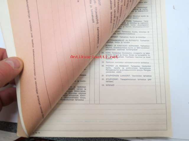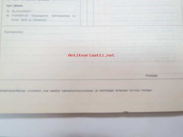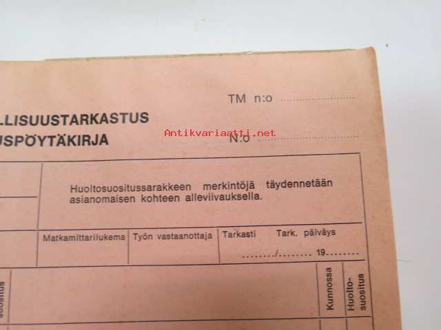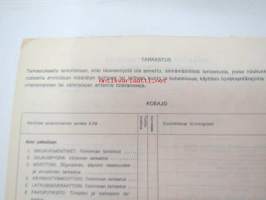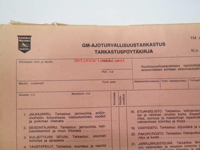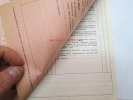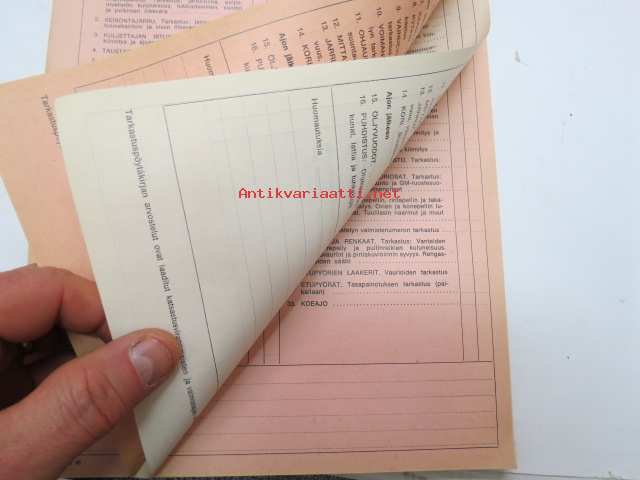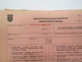 GM-ajoturvallisuustarkastus - Tarkastuspöytäkirja -nippu arviolta 1960-lukuisia käyttämättömiä lomakkeita