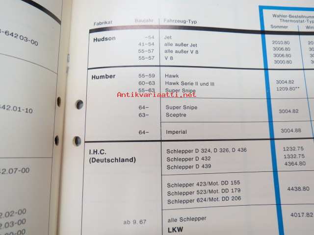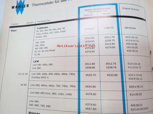 Wahler thermostate -termostaattiluettelo, merkkikohtaiset luettelo soveltuvuuksista