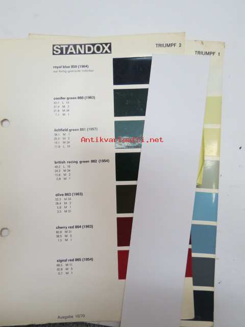 Triumph värimallit 2 sivua Standox värimalleja 1970