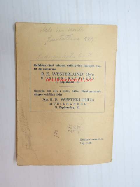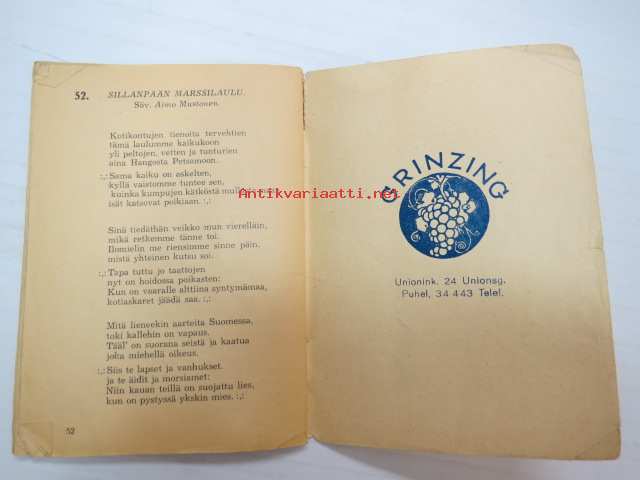 Lauluja Sånger Lieder nr 5 ravintola Grinzing Helsinki