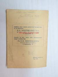 | Saatavilla | 1 kpl | | Julkaisuvuosi | 19?? | | Sivuja | 52 | | Kunto | K2 | | Sidonta/painoasu | Nidottu (pehmeäk.) | | Kielet | Suomi, Ruotsi, Saksa |