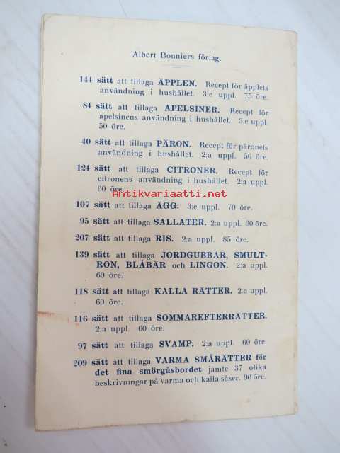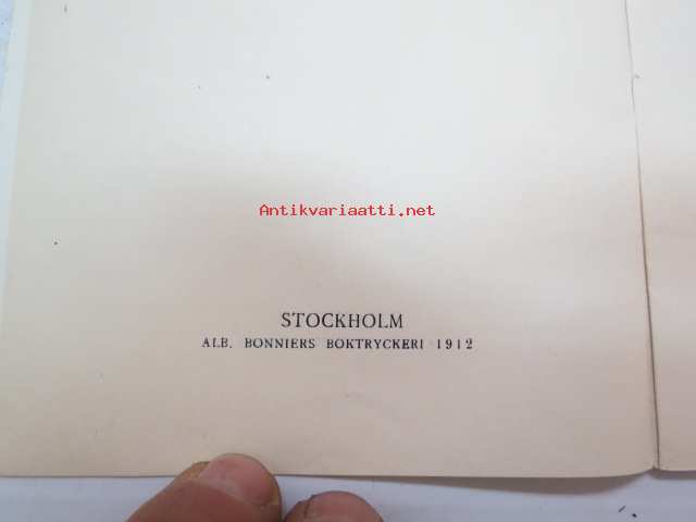 | Saatavilla | 1 kpl | | Julkaisuvuosi | 1912 | | Sivuja | 42 | | Painos | 2. | | Kunto | K2 | | Sidonta/painoasu | Nidottu (pehmeäk.) | | Kielet | Ruotsi |