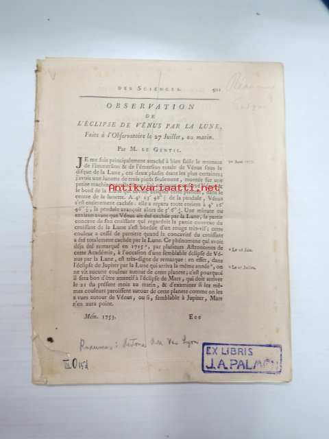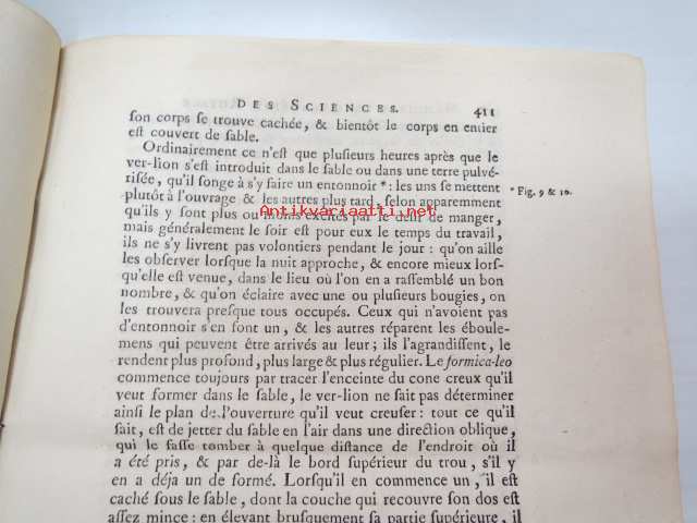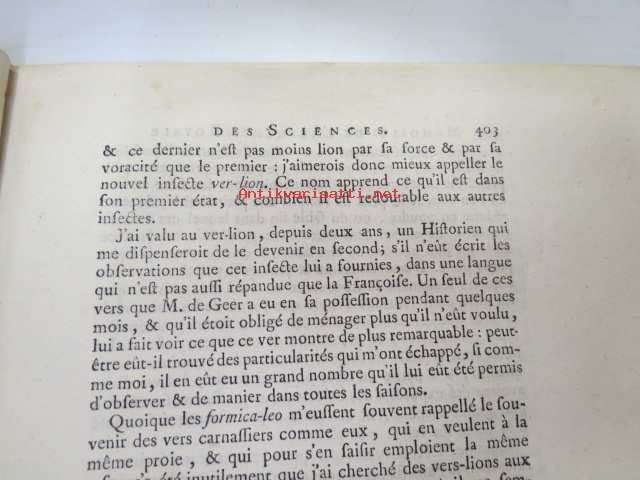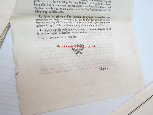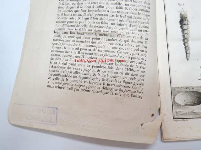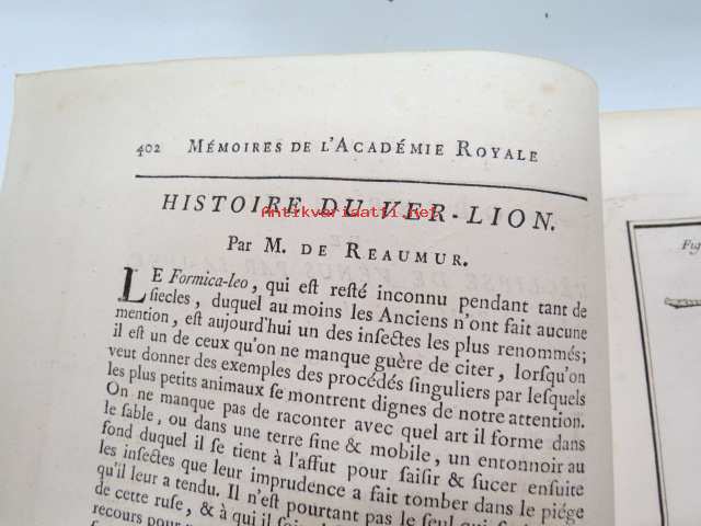 Histoire du Ver-Lion - Mémoires de L´Academi Royale des Sciences -sarjassa v. 1753 ilmestynyt tieteellinen tutkielma, eripainos / painoksen osa ilman erillisiä kansia -scientific publication, offprint - part of an series (without covers)