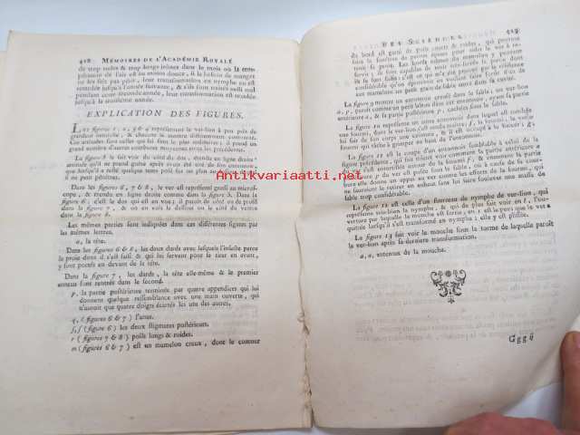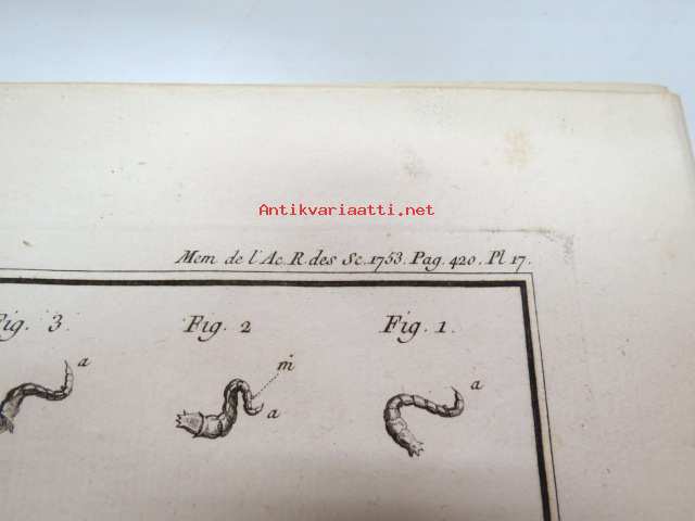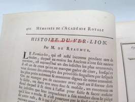 Histoire du Ver-Lion - Mémoires de L´Academi Royale des Sciences -sarjassa v. 1753 ilmestynyt tieteellinen tutkielma, eripainos / painoksen osa ilman erillisiä