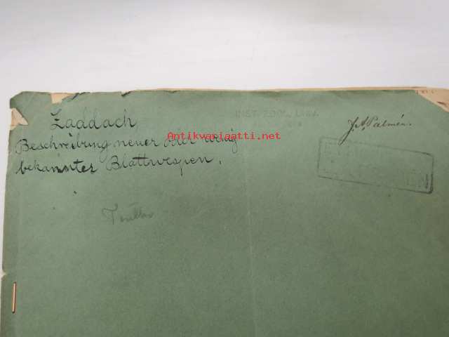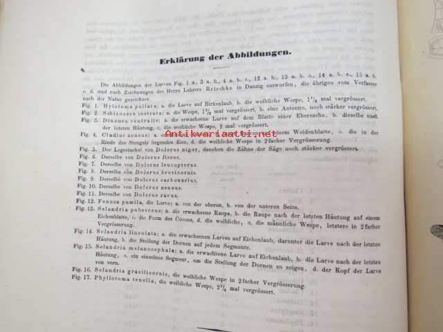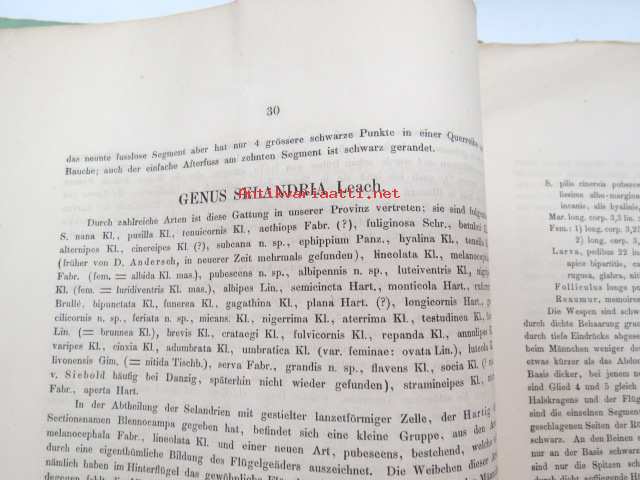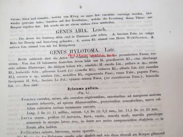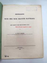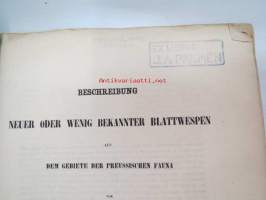 Beschreibung Neuer oder Wenig Bekannter Blattwespen aus dem Gebiete der Preussischen Fauna von Dr. Gustav Zaddach, Königsberg, 1859 -tieteellinen tutkielma, 1 kuvataulu, scientific publication, 1 plate