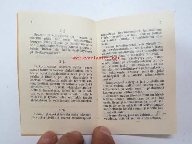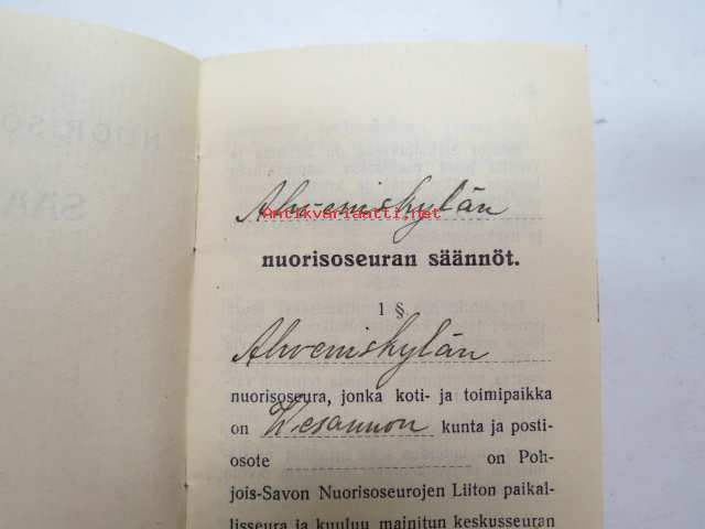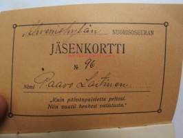Nuorisoseurojen sääntöjä - Ahveniskylän nuorisoseuran säännöt, jäsenkortti nr 96 - Paavo Laitinen