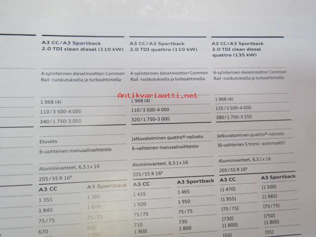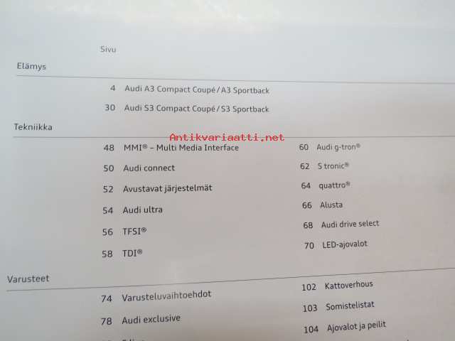 Audi A3 Compact Coupé, A3 Sportback, Audi S3 Compact Coupé, S3 Sportback 2014 -myyntiesite