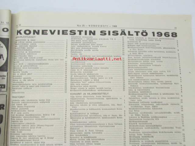 Maaseudun Ammattilehti Oy, 1968Koneviesti 1968 nr 25, sis. mm. seur. artikkelit / kuvat / mainokset; BM Volvo SM 668, Welger paalaimet, Siemenkeskus Turkuun, Moottorisahat Remington SL-9 ja McCulloch PM-6 kokeilussa, Audi 100 LS, Traktorikompressorit 1968 kuvat teknisiä arvoja ja ominaisuuksia, , katso tarkemmin sisältöä kuvista.