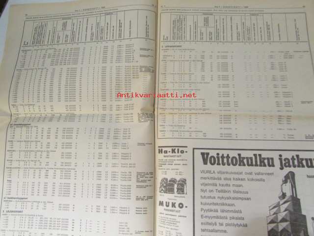 | Saatavilla | 4 kpl | | Julkaisuvuosi | 1969 | | Sivuja | 44 | | Kunto | K2 | | Sidonta/painoasu | Lehti | | Kielet | Suomi |