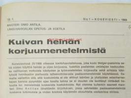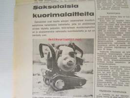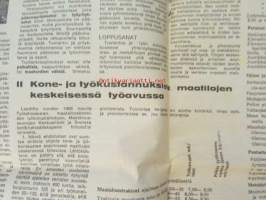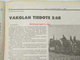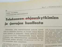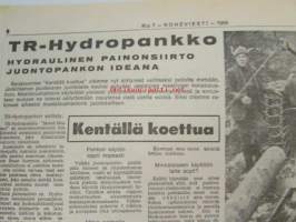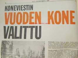 Koneviesti 1969 nr 1, sis. mm. seur. artikkelit / kuvat / mainokset; Kotimainen monitoimikone Pika-50 karsii ja katkoo, TR-Hydropankko - Hydraulinen painonsiirto