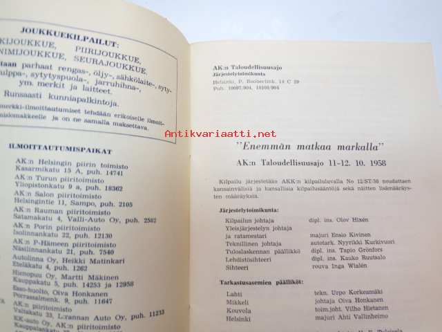 Suomen Autoklubi, 195814 x 21 cm.