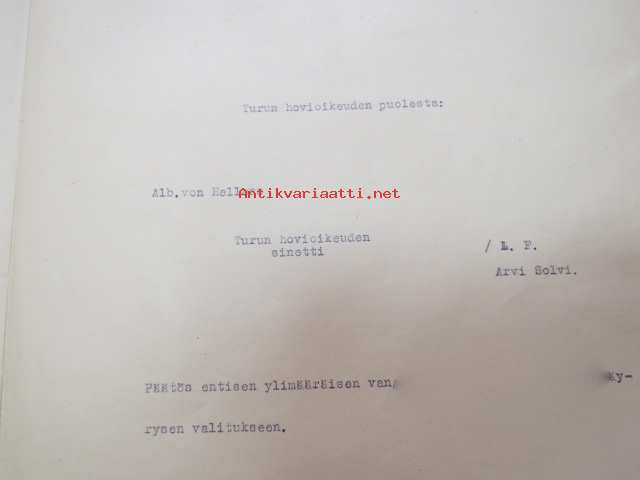 Turun Hovioikeuden päätös Helsingin keskusvankilassa tapahtuneeseen 3 lampaannahan varkauteen varastokopista, johon on kuritushuonevangin O.F.K:n lisäksi sotkeutunut ylimääräinen vanginvartija K.V.V. neuvollaan ja vihjeillään edesauttaen varkautta -asiakirjakopio