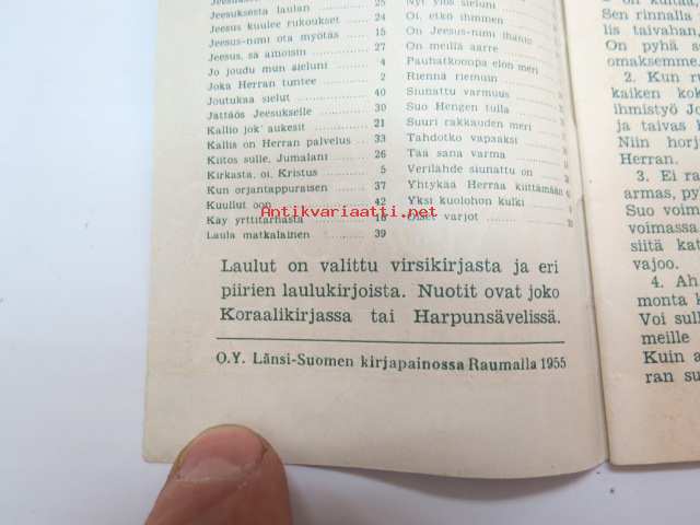 Kokouslauluja -herätyskokouksissa käytetty laulukirja -religious songs and hymns
