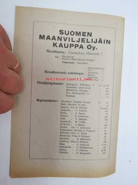 Gustaf Wahlroos, Suomen Maanviljelijäin Kauppa Oy SMK, 192915 x 22 cm.