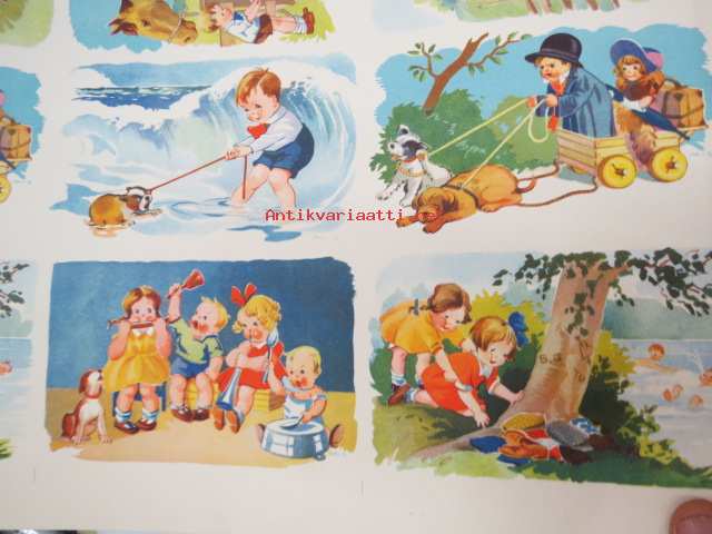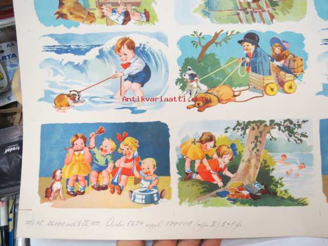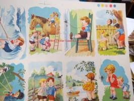 Postikorttiarkki v. 1945 -leikkaamaton painoarkki -uncut postcard print sheet