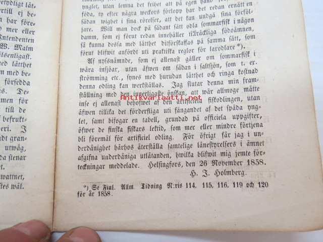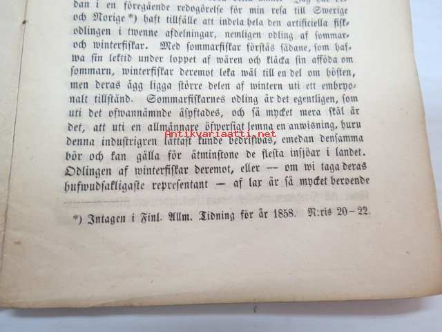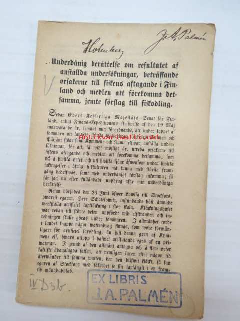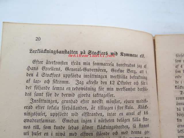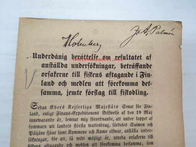 Undernådig berättelse om resultatet af anstallda undersökningar, beträffande orsakerne till sistens aftagande i Finland och medlen att förekomma detsamma, jemte förslag till fiskodling -ehdotus kalanviljelyasetukseksi -proposal to advance fish breeding