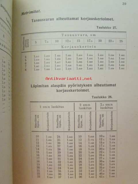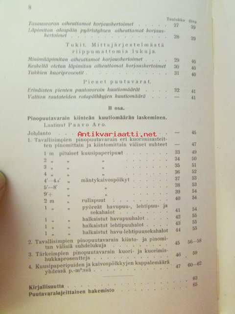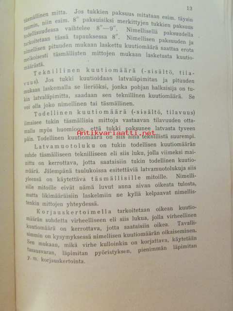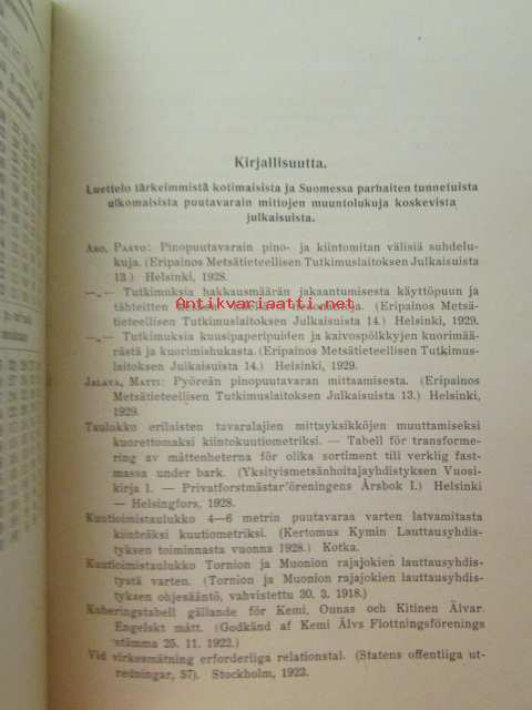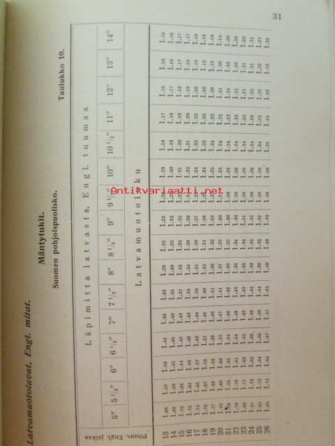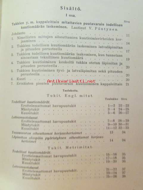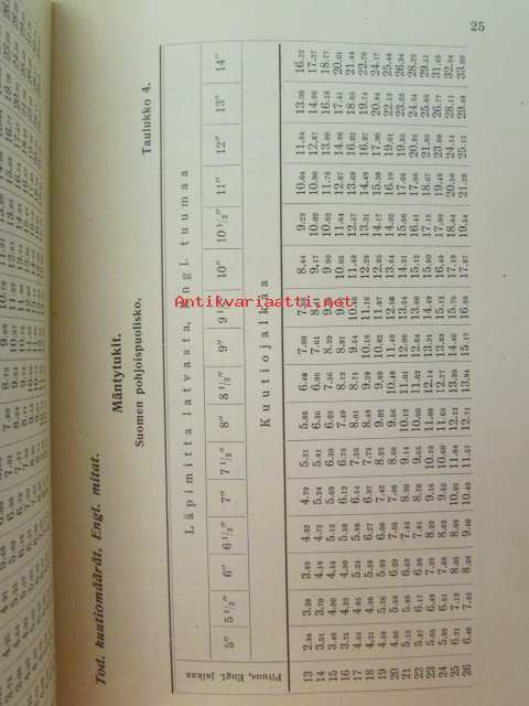 Kiintomittataulukkoja - Apuneuvoja erilaisissa mitoissa ilmaistujen puutavaramäärien todellisen kiinteän kuutiomäärän laskemiseksi