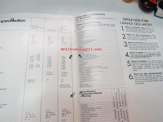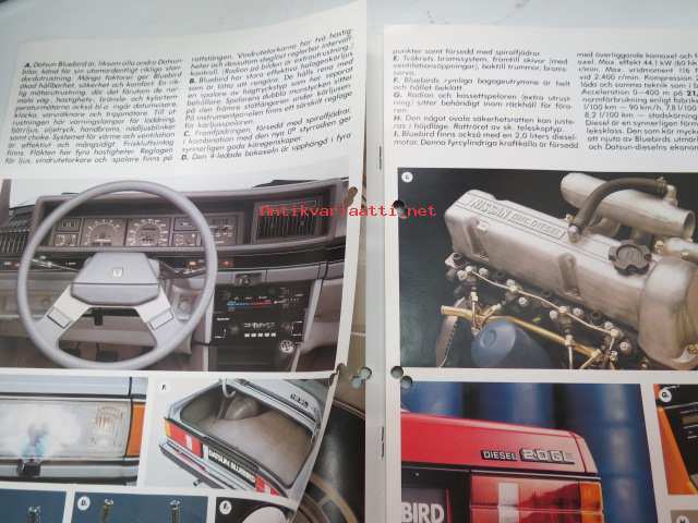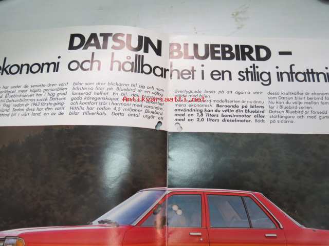 Datsun Bluebird 1.8 bens. / 2.0 diesel -myyntiesite ruotsinkielinen / brochure in swedish
