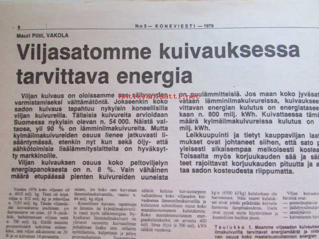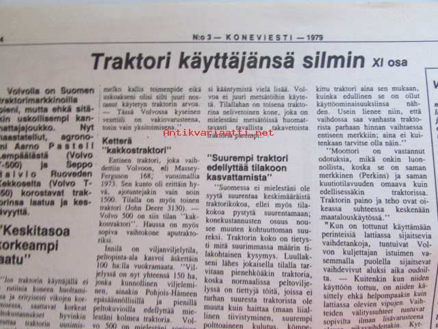 Koneviesti 1979 nr 3, sis. mm. seur. artikkelit / kuvat / mainokset; Maatalous energian tuottajana ja kuluttajana, Traktori käyttäjänsä silmin Volvo T-500,
