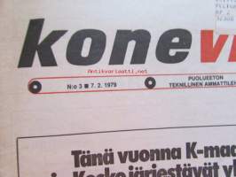 Koneviesti 1979 nr 3, sis. mm. seur. artikkelit / kuvat / mainokset; Maatalous energian tuottajana ja kuluttajana, Traktori käyttäjänsä silmin Volvo T-500, Vääntöä pitää olla Volvo T-650, Tasavirtageneraattori, Rolls-Royce E 265, Renault 18, Vammas -tiehöylä Tukholman kaduille, katso tarkemmin sisältöä kuvista.