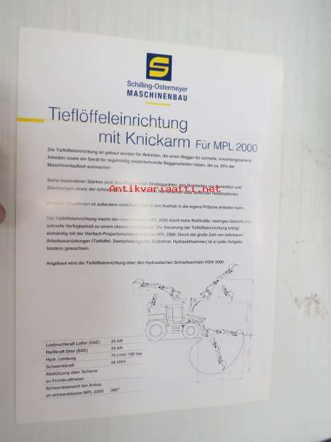 Schilling-Ostermeyer Maschinenbau - Tieflöffeleinrichtung mit Knickarm für MPL 2000 -myyntiesite / brochure