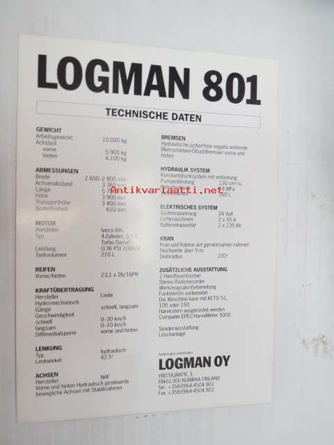 Logman 801 harvesteri -myyntiesite / harvester brochure in german