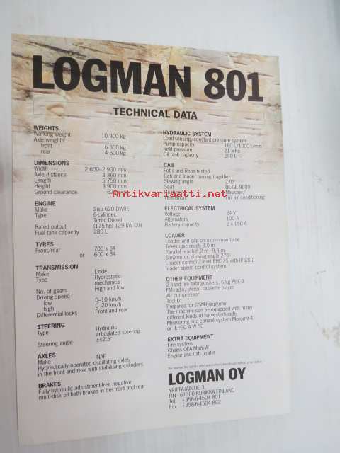 Logman 801 harvesteri -myyntiesite / harvester brochure in english