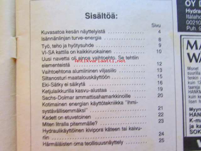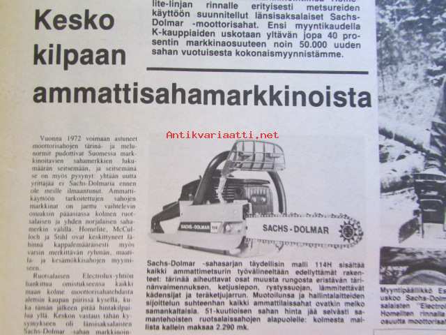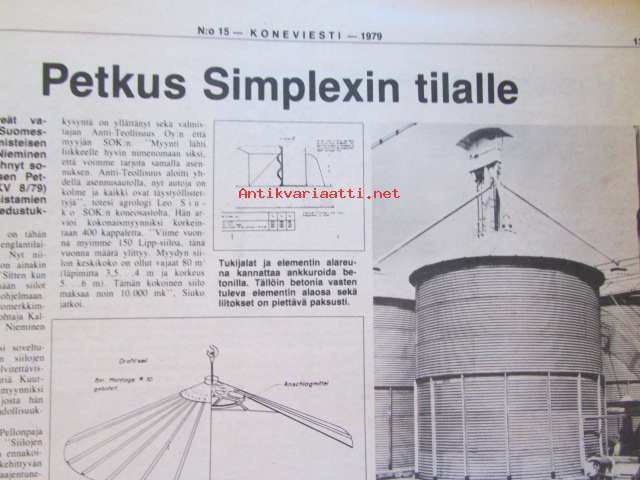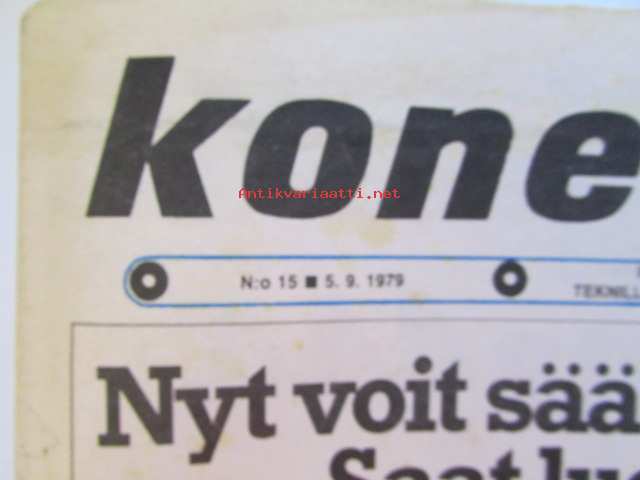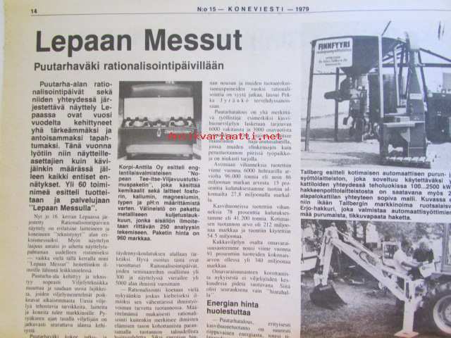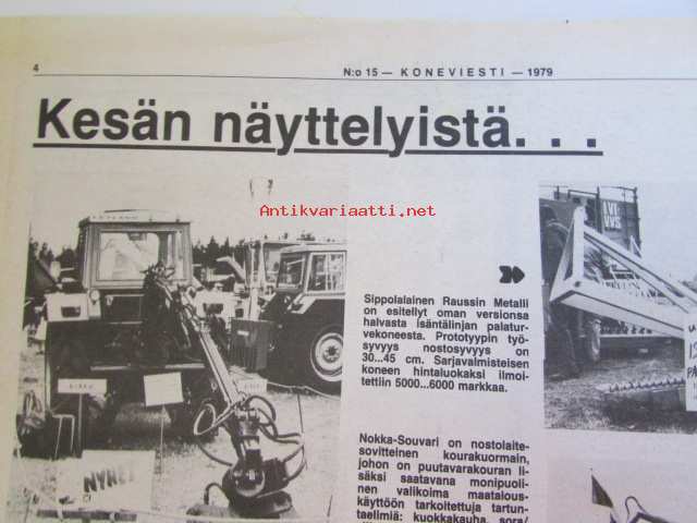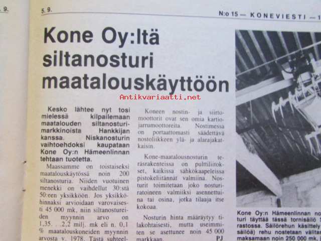Koneviesti 1979 nr 15, sis. mm. seur. artikkelit / kuvat / mainokset; Sachs-Dolmar ammattisahamarkkinoille, Kuvasatoa kesännäyttelyistä, Petkus Simple tilalle, Eki-Sätky ei säikäytäTapani Kaiku ja Martti Heinonen ketjuleikkurilla kasvualustaa, Etuvetoinen Opel Kadett, katso tarkemmin sisältöä kuvista.