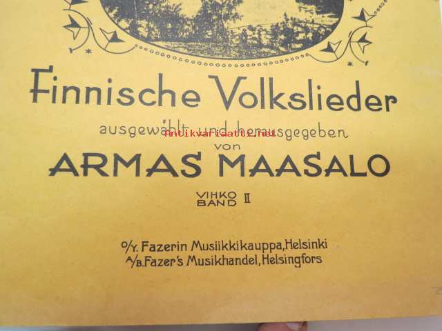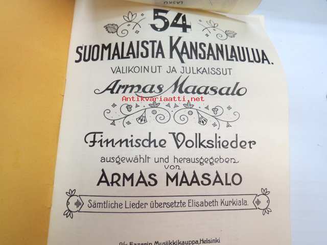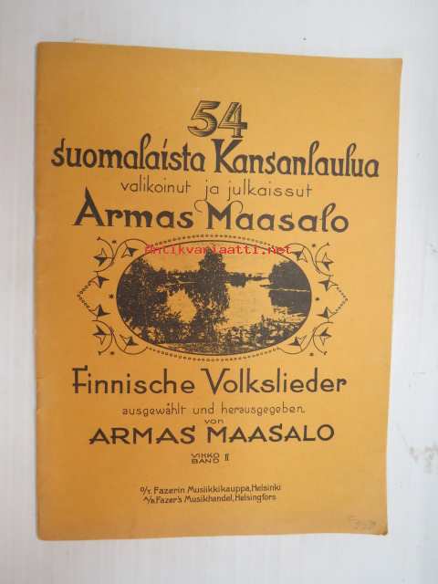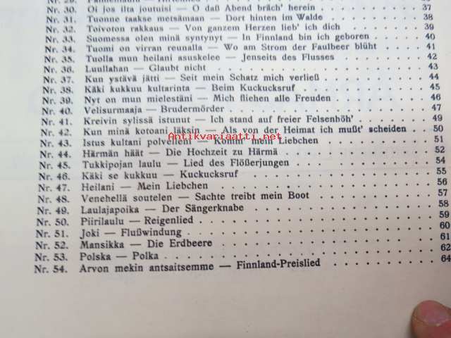54 suomalaista kansanlaulua. Valikoinut ja julkaissut Armas Maasalo - Finnische Volkslieder ausgewählt und herausgegeben von Armas Maasalo (kääntänyt saksaksi Elisabeth Kurkiala) Vihko II -finnish folk songs, in finnish and german