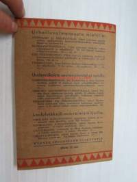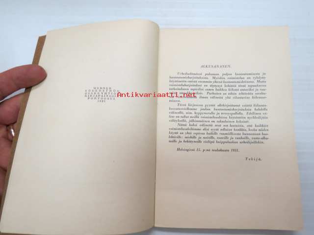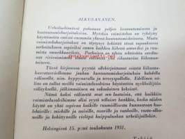 | Saatavilla | 1 kpl | | Julkaisuvuosi | 1931 | | Sivuja | 97 | | Painos | 1. | | Kunto | K3 | | Sidonta/painoasu | Nidottu (pehmeäk.) | | Kielet | Suomi |