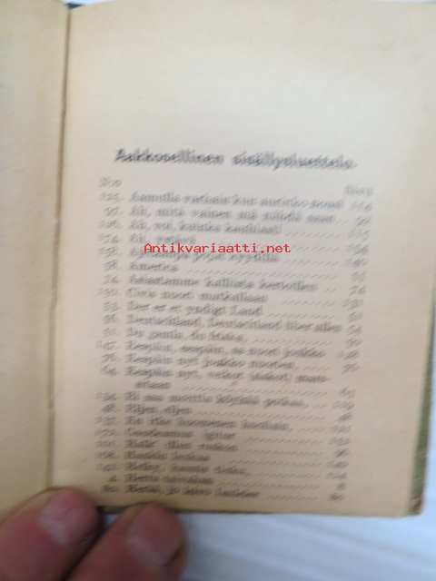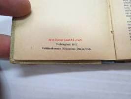 | Saatavilla | 1 kpl | | Julkaisuvuosi | 1910 | | Sivuja | 160 | | Painos | 1. | | Kunto | K2 | | Sidonta/painoasu | Sidottu (kovak.) | | Kielet | Suomi |