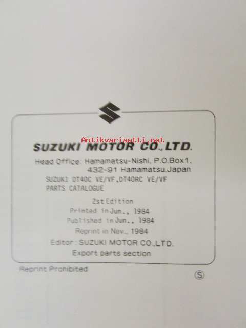 Suzuki DT40C, DT40C ve/DT40RC ve - DT40C vf/DT40RC vf- Parts Catalogue -perämoottori varaosaluettelo