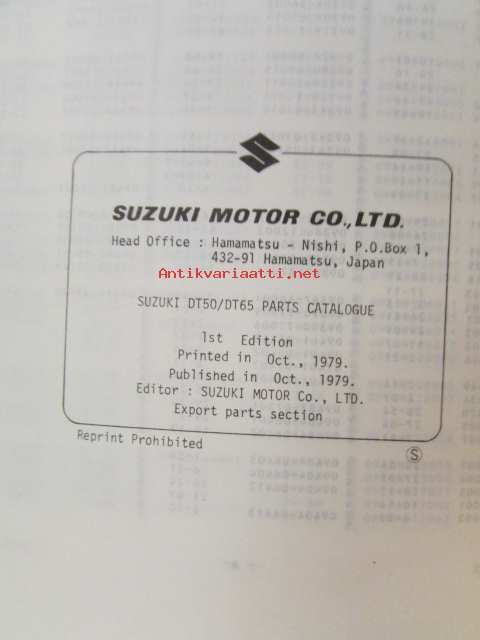 Suzuki DT50G - DT50MG DT65G - Parts Catalogue -perämoottori varaosaluettelo