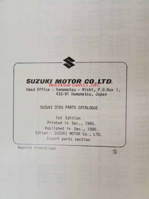 Suzuki DT85G / DT85J - Parts Catalogue -perämoottori varaosaluettelo, katso kuvista tarkemmat mallimerkinnät