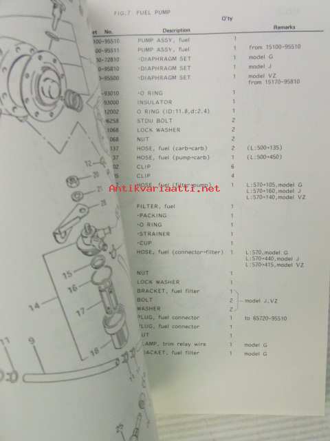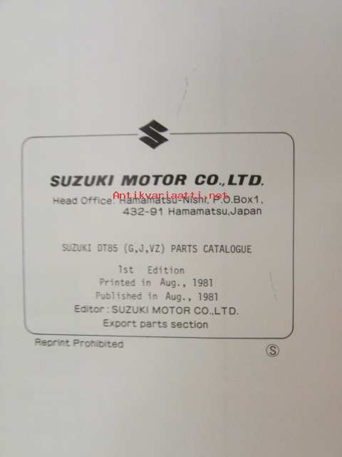 Suzuki DT85G / DT85T / DT85T 0/1 model G,J,VZ - Parts Catalogue -perämoottori varaosaluettelo, katso kuvista tarkemmat mallimerkinnät