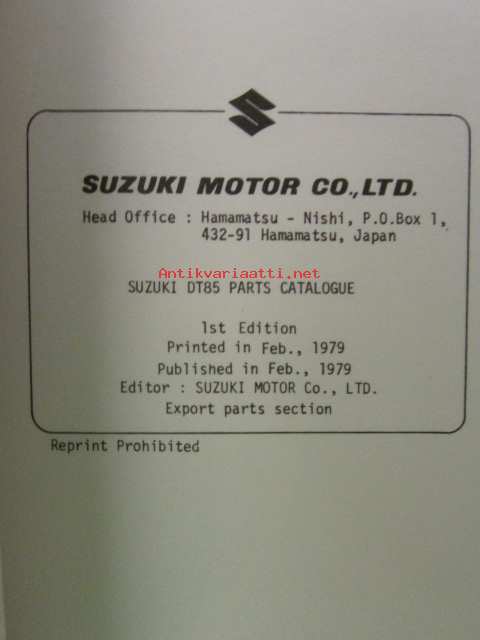 Suzuki DT85F - Parts Catalogue -perämoottori varaosaluettelo, katso kuvista tarkemmat mallimerkinnät