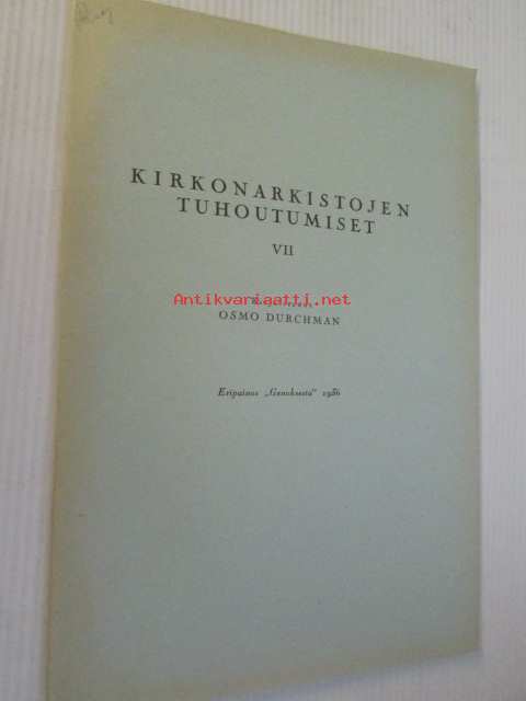 Kirkonarkistojen tuhoutumiset VII eripainos Genoksesta 1936