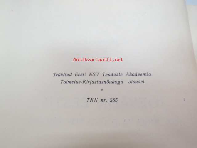 | Saatavilla | 1 kpl | | Julkaisuvuosi | 1958 | | Sivuja | 184 | | Painos | 1. | | Kunto | K2 | | Kirjastopoisto | | Sidonta/painoasu | Sidottu (kansipaperit) | | Kielet | Viro |