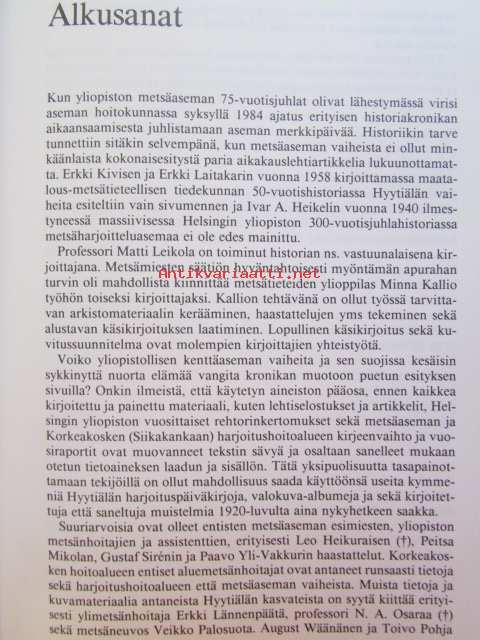 Hyytiälä - Helsingin Yliopiston Metsäasema v. 1910-1990