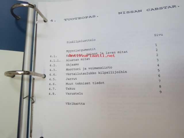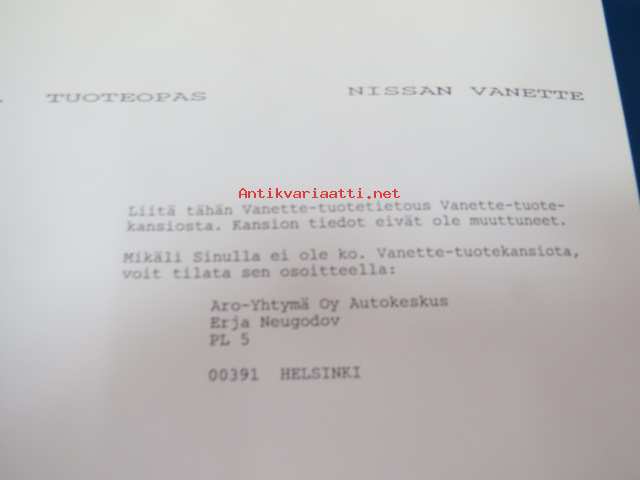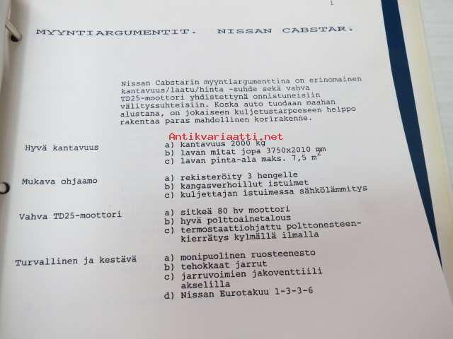 Nissan pakettiautojen tuotekansio / dealer´s van info folder