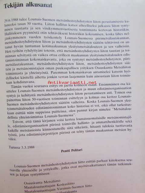 Metsätaloudellista yhteistoimintaa Lounais-Suomessa - Lounais-Suomen metsänhoitoyhdistysten liitto 1938-1988, Lounais-Suomen metsänhoitoyhdistysten säätiö 1938-1988