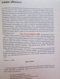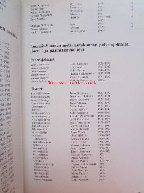| Saatavilla | 1 kpl | | Julkaisuvuosi | 1988 | | Sivuja | 123 | | Painos | 1. | | Kunto | K3 | | Sidonta/painoasu | Sidottu (kansipaperit) | | Kielet | Suomi |