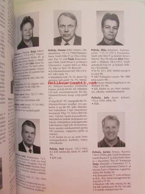 | Saatavilla | 1 kpl | | Julkaisuvuosi | 1999 | | Sivuja | 543 | | Painos | 1 | | Kunto | K3 | | Sidonta/painoasu | Kuvitettu kovakantinen | | ISBN | 951-98485-0-9 | | Kielet | Suomi, Ruotsi |