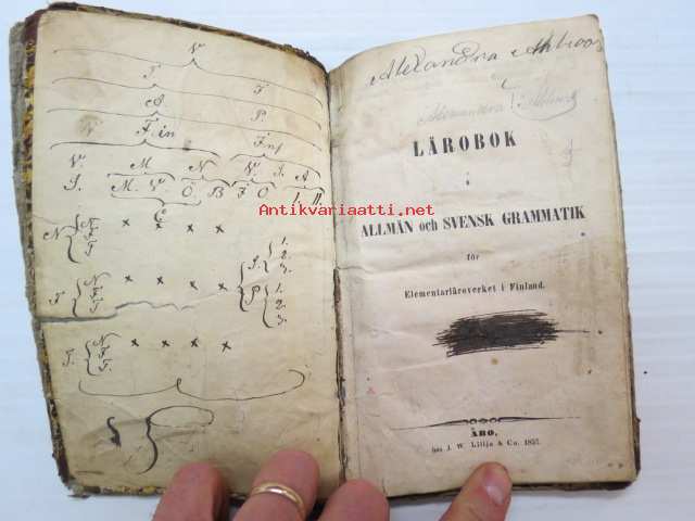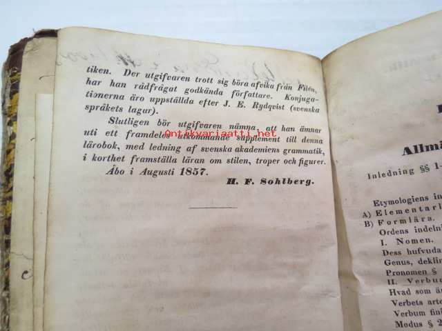Lärobok i allmän och svensk grammatik för Elementarläroverket i Finland, 1857 -school book in grammar (swedish language)